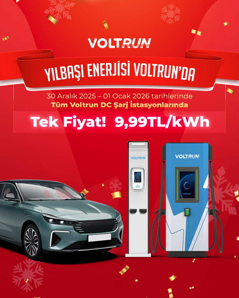 Yeni yılın heyecanını ve mutluluğunu hep birlikte yaşıyoruz. 🎉 Sürdürülebilir seyahatin konforunu ve keyfini çıkarmak şimdi daha avantajlı! ⚡🚗 30 Aralık 2025 – 01 Ocak 2026 tarihleri arasında, Tüm Voltrun DC şarj istasyonlarında aracınızı sadece 9,99 TL/kWh sabit fiyatla şarj edebilirsiniz. 🚗⚡ * Kampanya süresince, kampanyalı 100 kW üstü tarife fiyatına ilave indirim uygulanmaz.…